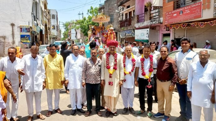 कुक्षी :नगर मे क्षत्रिय सिर्वी समाज द्वारा श्री आईजी रोड़ स्थित नवनिर्मित “माधव श्री प्रसादम” मांगलिक भवन के शुभारंभ को लेकर सप्तदिवसीय कार्यक्रम के तहत 11 मई गुरुवार को सुबह श्री आई माताजी गादी पाट का पूजन किया गया जिसके लाभार्थी महेश रामाजी सिद्ध परिवार रहा। मंदिर परिसर से मंगल कलश यात्रा निकाली गई। जिसमे 400 से अधिक महिलाये विशेष ड्रेस कोड मे सिर पर कलश लेकर चल रही थी।कलश यात्रा श्री आई माताजी मंदिर से शुरु होकर बड़ी हताई, श्री राम चौक,छोटी हताई,सोनी मोहल्ला,रेटकुआ,मंगलवारिया, मेन बाजार,श्री आईजी रोड होते हुए कार्यक्रम स्थल माधवश्री प्रसादम मांगलिक भवन पहुंची।