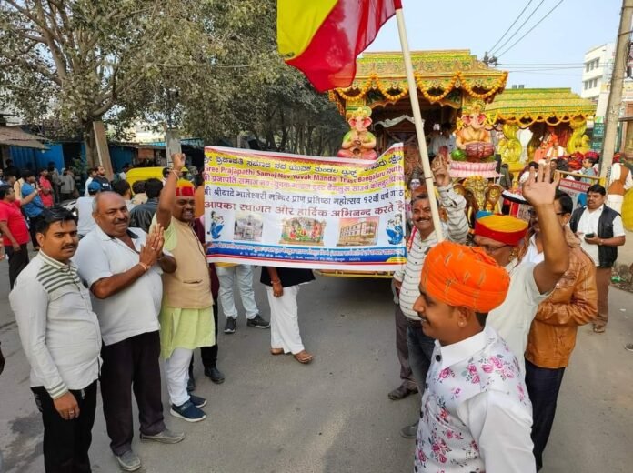 बेंगलुरू शहर में श्री प्रजापत समाज नवयुवक मंडल ट्रस्ट बेंगलुरू साउथ कोतनूर धिन्ने की ओर से श्री श्रीयादे माताजी मंदिर की 12 वी वर्षगांठ (कुम्भ अभिषेक महोत्सव) पर दो दिवसीय आयोजन का शुभारंभ आज सुबह छह बजे श्री श्री 1008 श्री हुक्म भारतीजी महाराज और श्री श्री 1008 श्री सुरेन्द्रदासजी महाराज का बंधावना के साथ कलश यात्रा का शुभारंभ गायत्री मंदिर से श्रीयादे माता के समक्ष दीप प्रज्वलित, कर गाजे बाजो के साथ शुरू हुई।