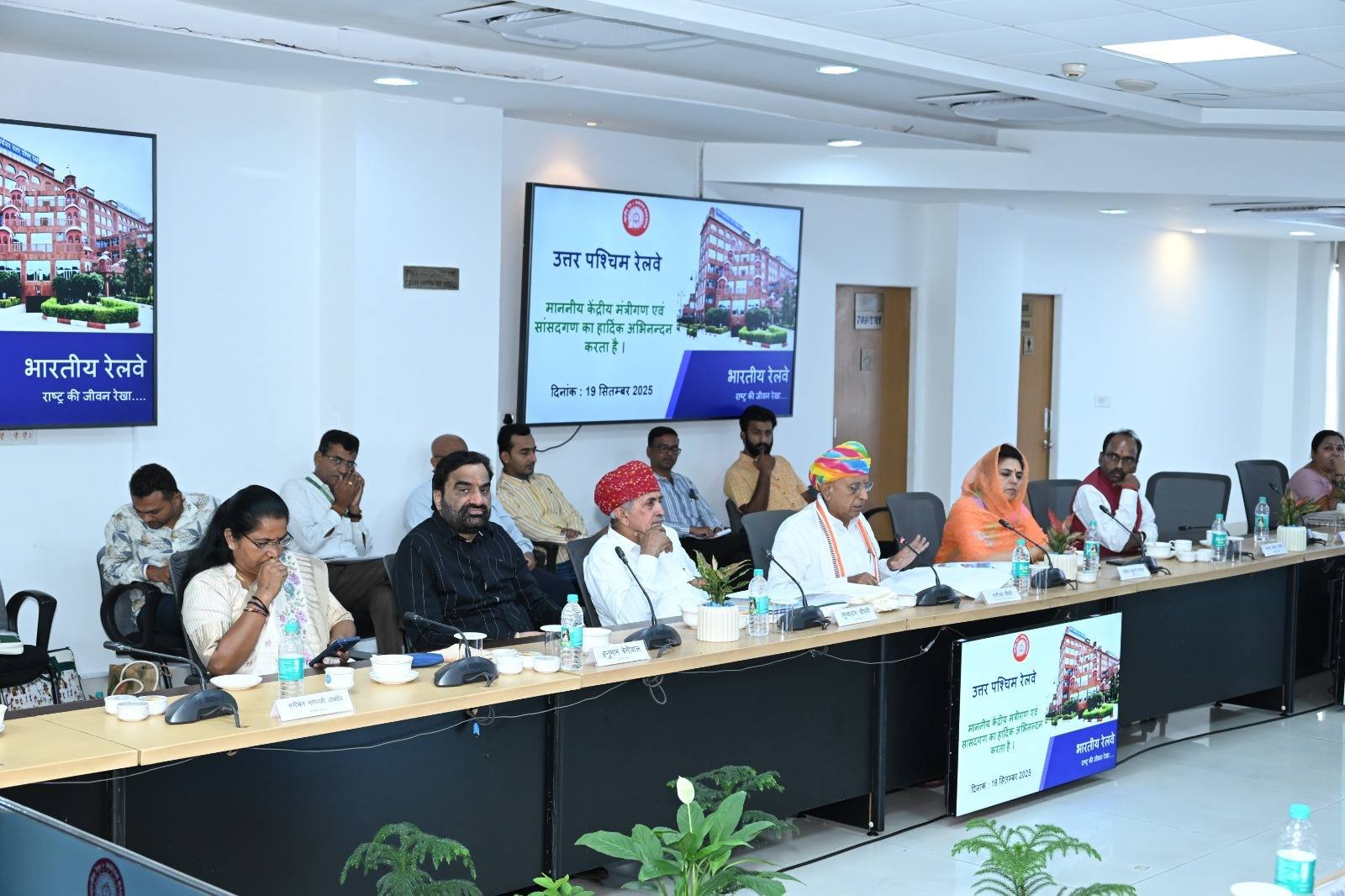जयपुर। आज उत्तर पश्चिम रेलवे मुख्यालय पर आयोजित मंडलीय समिति की बैठक में नागौर सांसद हनुमान बेनीवाल ने भाग लेकर रेलवे से जुड़े कई अहम मुद्दों पर चर्चा की और विकास कार्यों, ट्रेनों के ठहराव तथा नई परियोजनाओं के प्रस्ताव रखे।