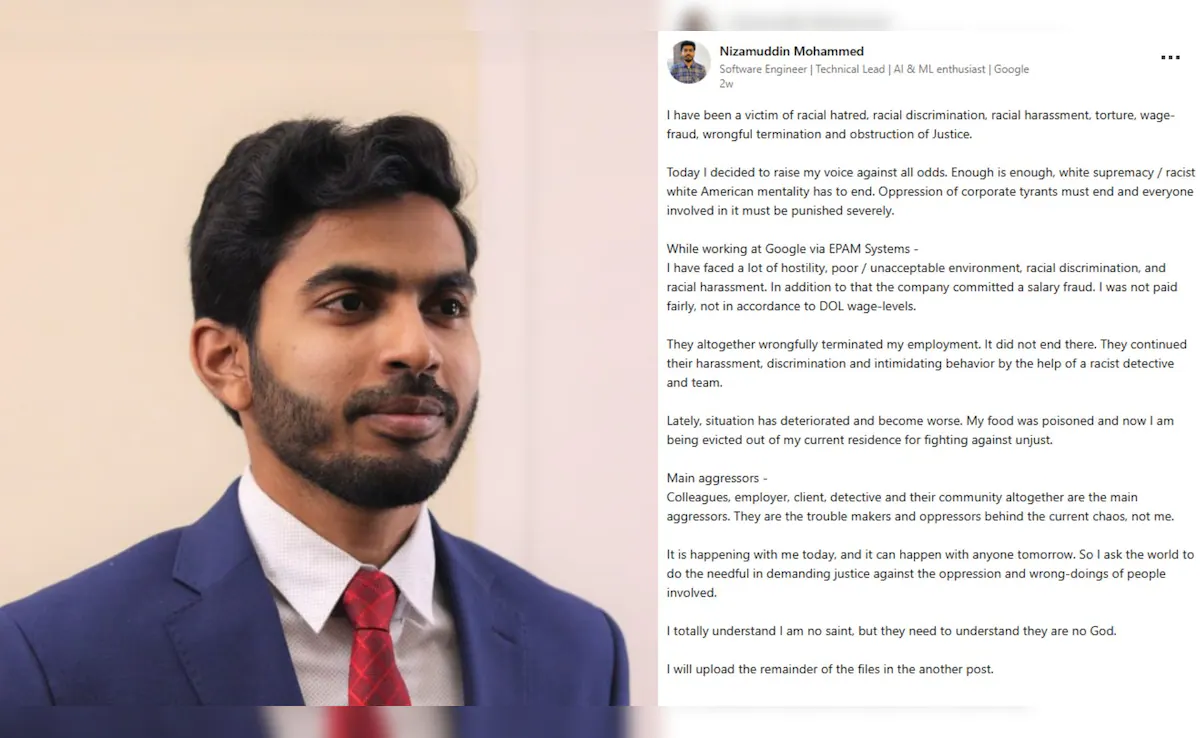 कैलिफोर्निया। अमेरिका के कैलिफोर्निया में एक भारतीय इंजीनियर मोहम्मद निजामुद्दीन को पुलिस ने गोली मार दी, जिससे उनकी मौत हो गई। घटना के बाद भारतीय समुदाय और मृतक के परिवार में गुस्सा है। परिवार ने पुलिस पर नस्लीय भेदभाव का आरोप लगाते हुए मामले की निष्पक्ष जांच की मांग की है।